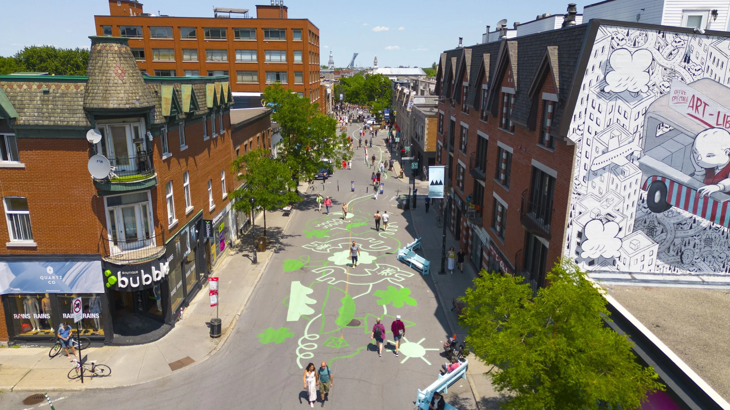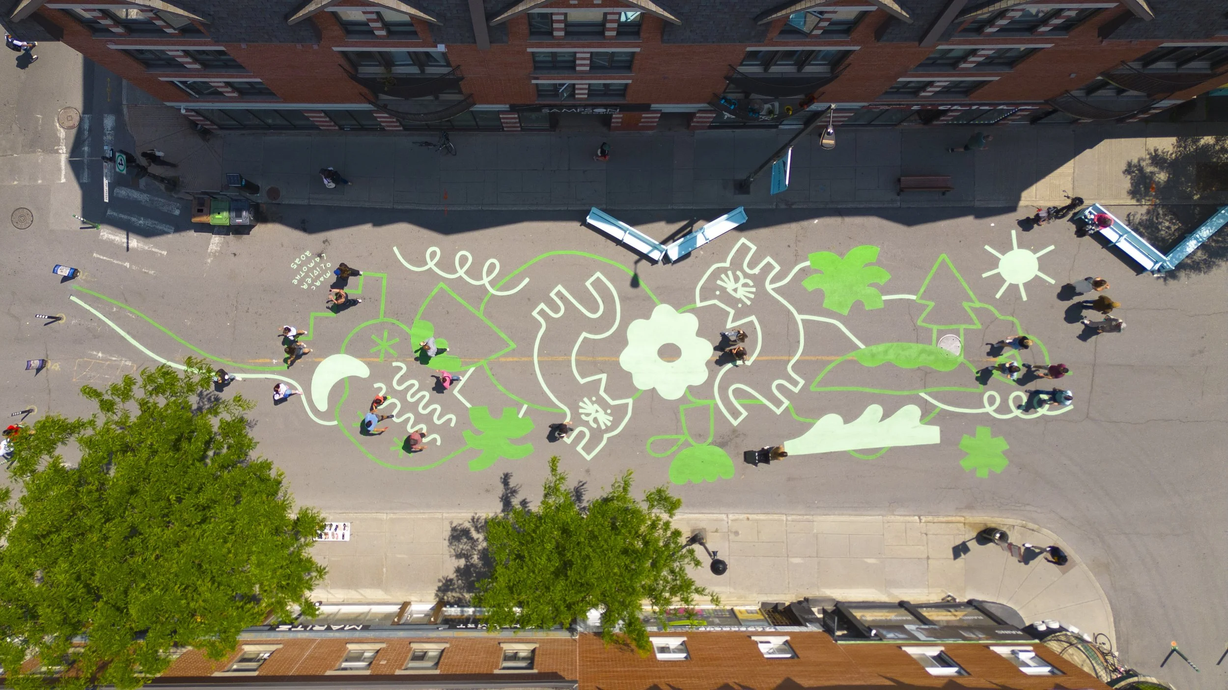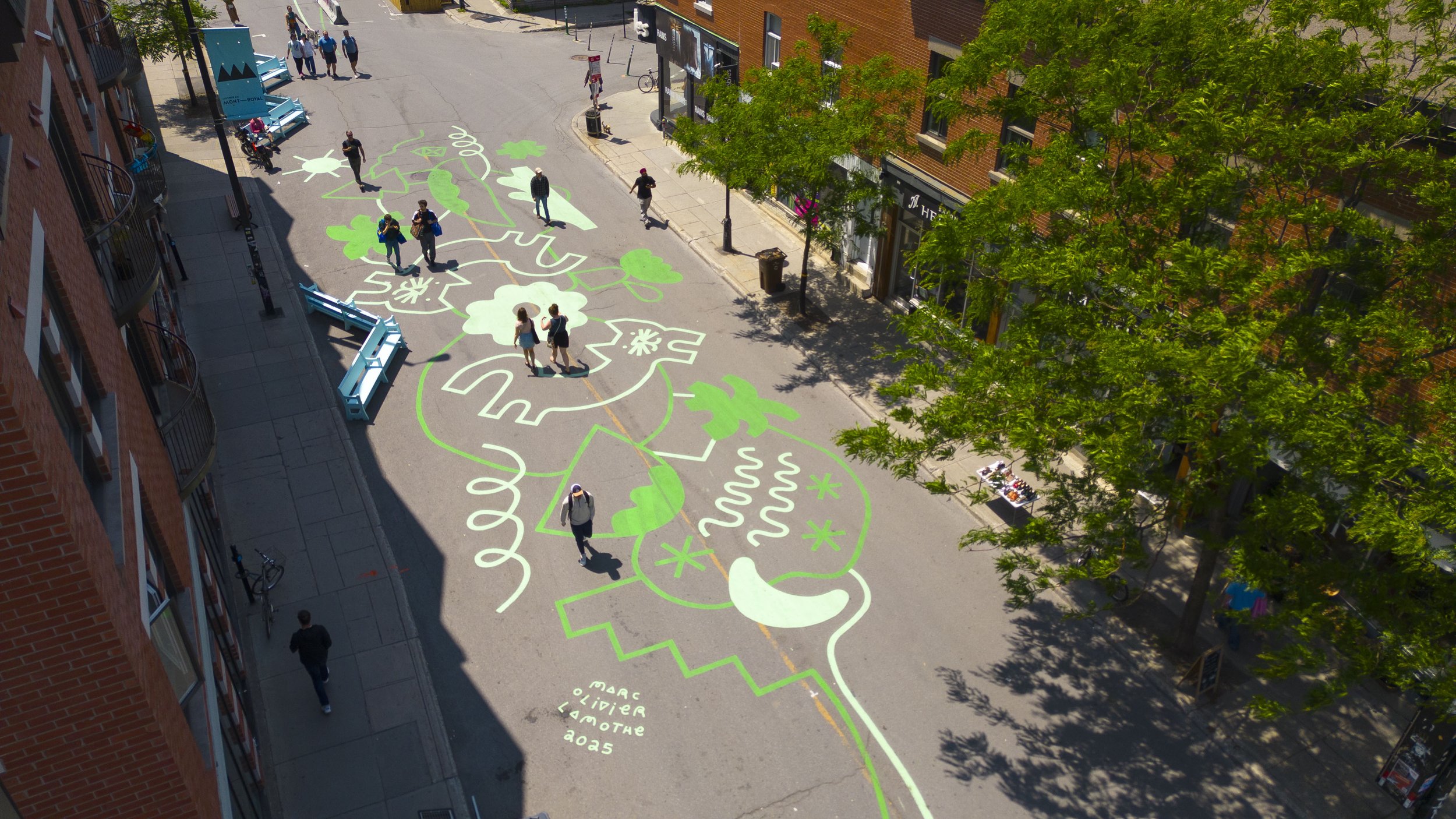 Fresque au sol réalisée sur l'avenue Mont-Royal en collaboration avec MU.